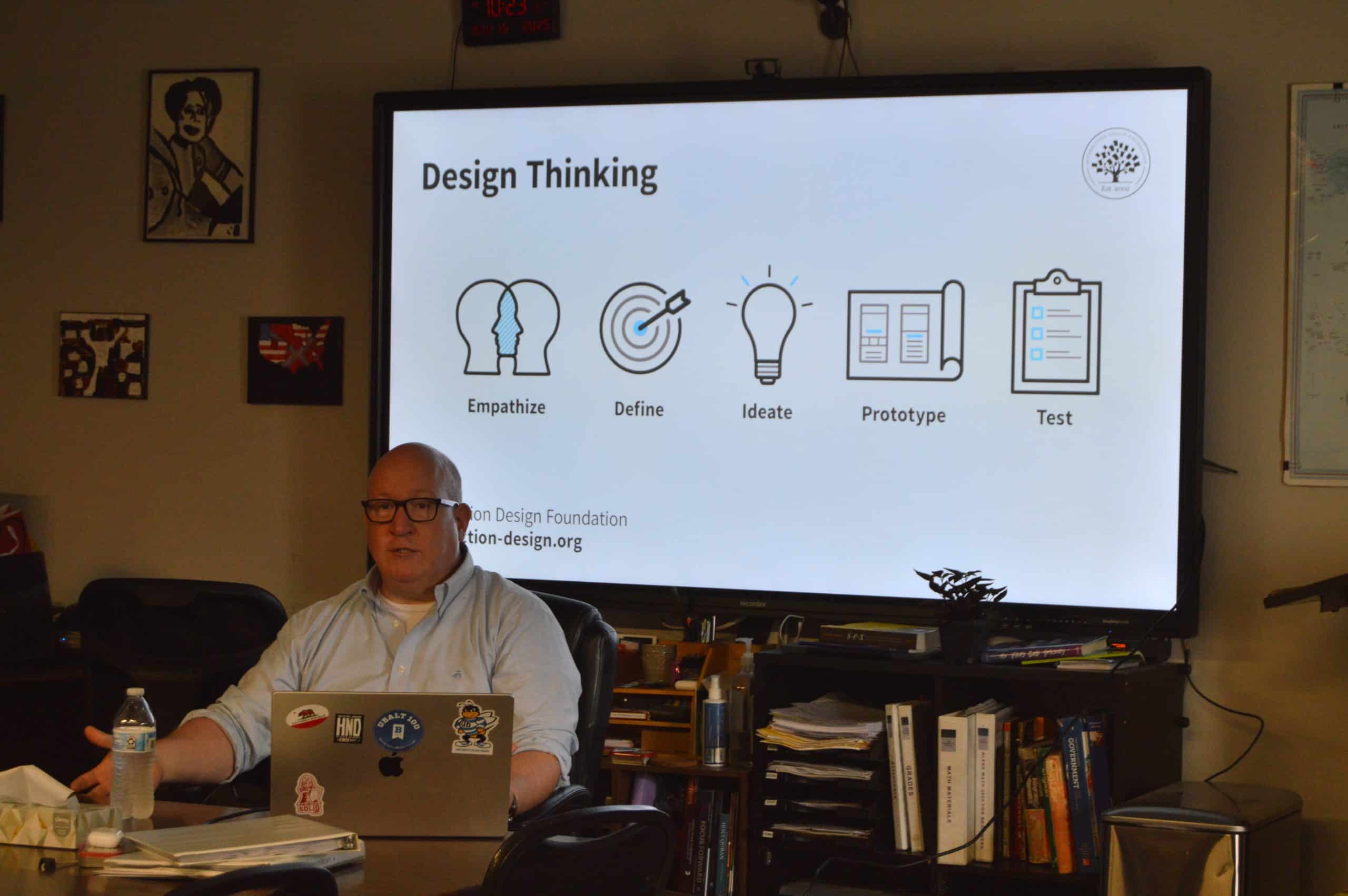 We had a fascinating conversation with Dr. Greg Walsh today. He is Director of the University of Baltimore's Center for Digital Communication, Commerce, and Culture. We first had contact with Dr. Walsh seven years ago when he introduced our students to design concepts at a program at the Reginald Lewis Museum. Co-design is an approach to design that includes the users and those affected in the process. Dr. Walsh promotes the inclusion of people traditionally not included in the design process when products and programs are developed such as lower income and people of color. He shared his philosophy and illustrated it with examples to further our understanding. The students were keenly interested in his work and the tools he uses. We are exploring with Dr. Walsh the opportunities for working together in the next school year. Thank you for sharing your time and ideas with us, Dr. Walsh....